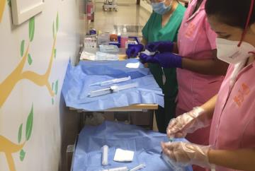 Secondly, we could learn many knowledges and experiences for thalassemia transplant and severe aplastic anemia. For our nurse, Ms. Tram could observer and know how to prepare patients, medicines and equipments before doing procedures including bone marrow harvest, peripheral bone marrow harvest, stem cell infusion, fluid and antibiotic infusions. Ms. Tram also learnt how to record patients’ condition through BMT plus and how to educate their parents to keep hygiene.