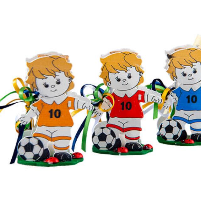 Bomboniera Solidale Calciatori con confetti alla mandorla e pergamena.
