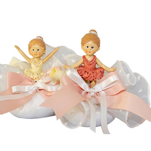 Ballerine in resina, 2 soggetti su base piccola, rosa - avorio h. 8,5 cm x ca 5 cm con portaconfetti color rosa
