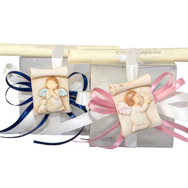 La bomboniera sarà consegnata già montata con 5 confetti bianchi di mandorla e pergamena personalizzabile senza costo aggiuntivo con nome, evento e data.